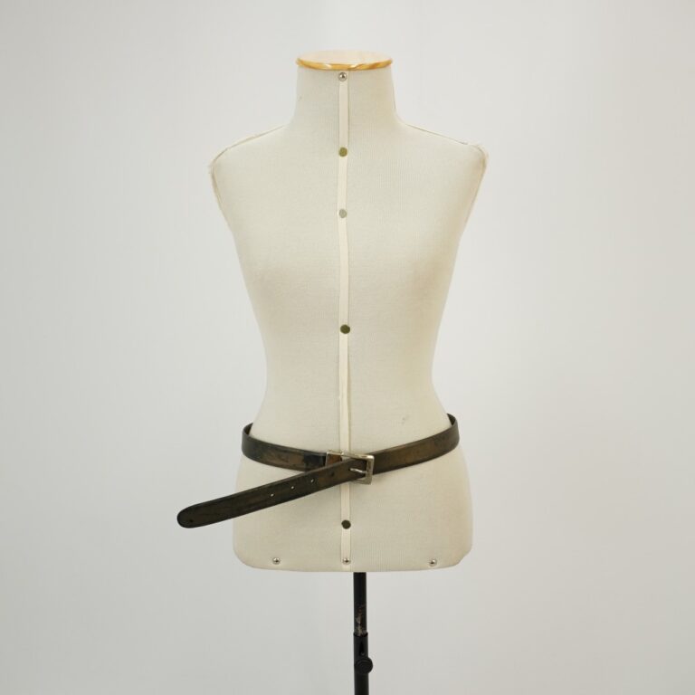 by Michelle Araujo Leia Mais...Cinto de couro marrom pintado com tinta dourada envelhecida, fivela prateada e cinco buracos.