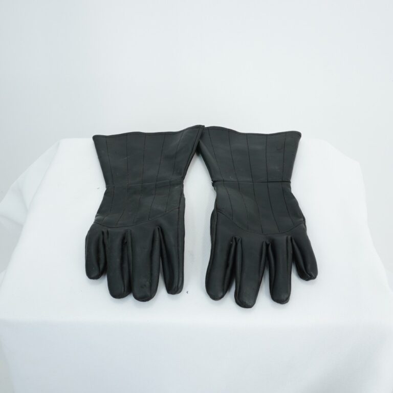 by Michelle Araujo Leia Mais...Par de luvas pretas em couro sintético, possuí cinco costuras verticais na parte superior e recorte no pulso criando um evasê