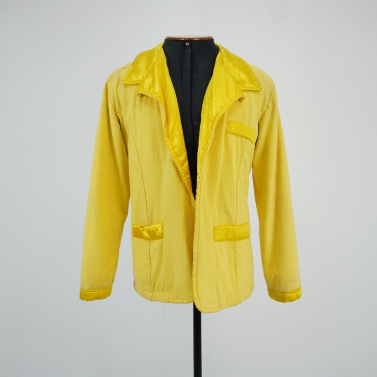 Blazer amarelo, três bolsos, sendo um do lado inferior direito, um falso no inferior esquerdo e um falso no superior esquerdo. Aba dos bolsos, punho e gola com...